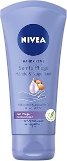 NIVEA Soin doux pour les mains (75 ml), crème riche pour la peau à l'huile de macadamia et fleur de lotus, soin intensif pour les mains et les cuticules.