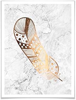 1art1 Poster Cuivre – Plume aspect marbre brillant aspect cuivre Wall Art – 40 x 50 cm