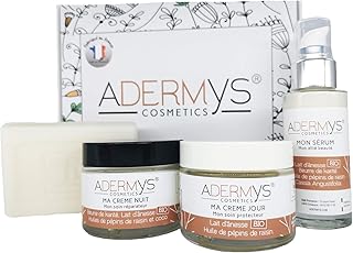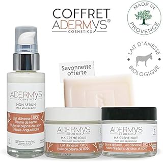 S&B Provence - Coffret Adermys® Cosmetics - Ma Routine Beauté 4 Produits - Ma Crème de Jour + Ma crème de Nuit + Mon Sérum + Savon au Lait d'Ânesse Bio (offert) - Fabriqué en Provence